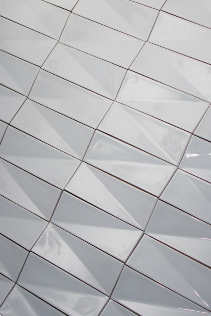 Simple geometrical tiles with two contra-inclined surfaces. The morphology comes from the study of the pine bark structure. By its form, it tributes to Cubism in architecture, a unique Czech legacy in world architecture. The set consists of two types which enable a bunch of different compositions.