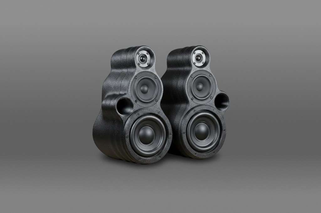 High-fidelity 3-way bookshelf speaker with bass reflex and a powerful sound, featuring a 3D-printed unibody.