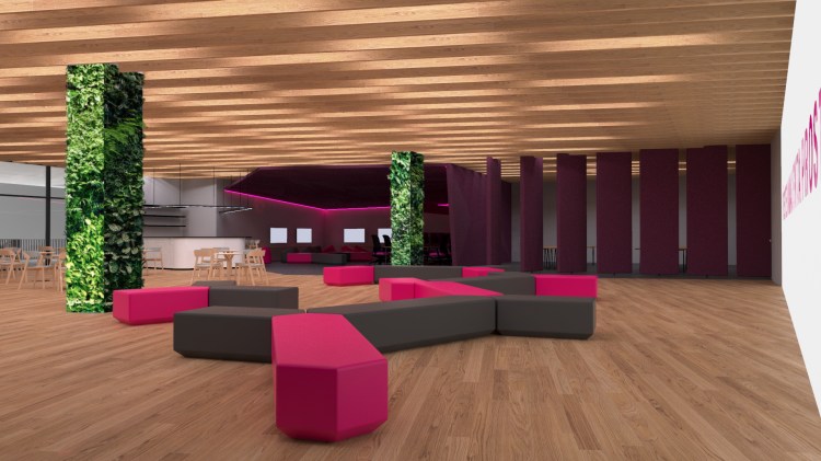 A submission in the T-mobile “design hackathon” workshop within 48 hours. The task was to design a concept of an experience centre, which could host a wide range of events. Workshops, lectures, discussion panels, gaming tournaments, sometimes maybe even gala evenings for the occasion of introducing a new product and even more. But also a place that anybody can come to, try out new tech gadgets, sit for a while of work or just sit for a coffee. A place where youngsters, as well as seniors, can feel comfortable and welcomed. The room was exact, ca 800 square metres, placed in the shopping centre. Budget unlimited.