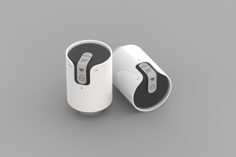 The concept focuses on the ergonomy and best comfort of use. It is taking into account all different standard ways of installation of the thermostatic valves – that means perpendicular to the wall and parallel to the wall both horizontal and vertical. To provide comfort legibility of the displayed information, the display is bent over two sides of the valve. The front-facing half of the display serves as a status display, that can be cursorily checked from further distances. The upper half of the display serves when the user approaches the valve and want to adjust the temperature directly. The display uses e-ink technology so the static information can be displayed permanently without any energy consumption.